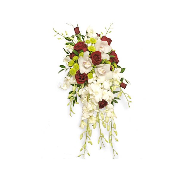 Vous vous mariez et vous désirez les fleurs qui seront à la hauteur de votre beauté en cette journée, ce bouquet de marié vous est tout simplement destiné. Des fleurs d'orchidée, de très discret chrysanthème vert avec une délicate touche de rose rouge. Vous attirerez tous les regards.